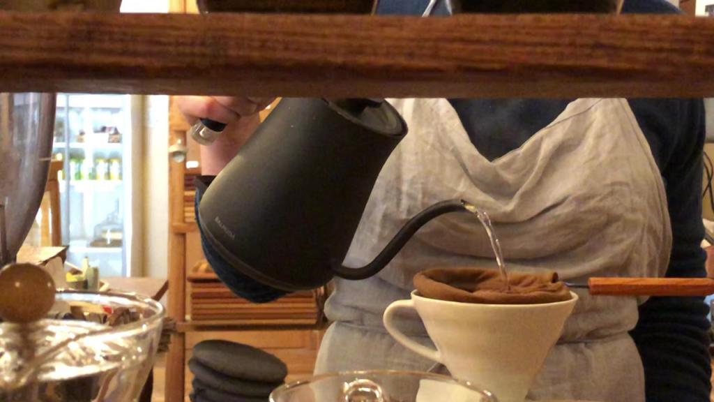 コチラのコーヒーのフィルターはなんと「丹後ちりめん」を使っているとのこと。シルクなので紙よりもまろやかな味わいになるんだとか。