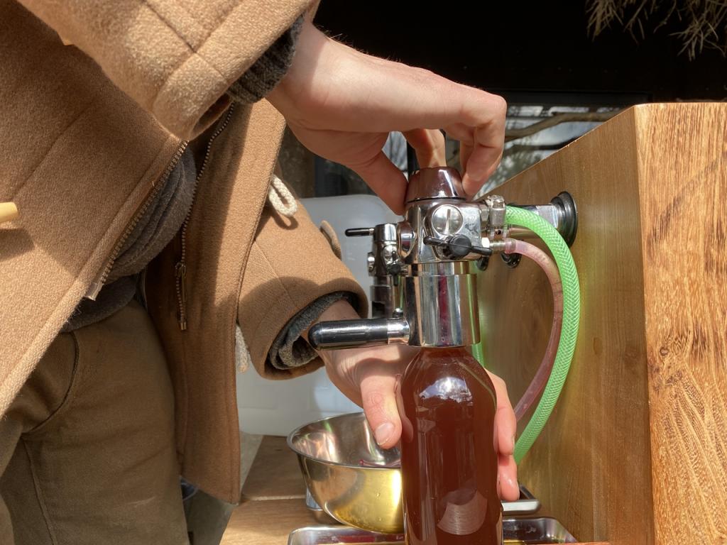 ・・・・とこのまま帰る予定だったんですが、山の席から降りてくると、お店の入口の横に地ビールの販売を始める準備が進んでいました。こんなの初めて見た!ってことで、大のビール好きの私はさっそくお話をきくことに!