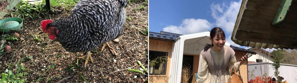 清潔感あふれるかわいい外観、入口付近にいくと、ニワトリ数羽が目の前に現れました?!