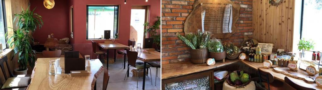 お店に入ると木で作られた店内、ほっこりと落ち着く雰囲気。テーブルにはたくさんの地元のスイーツなどの特産品がずら~っと並んでいて、その奥にはお米やオーガニック野菜たちや新鮮な卵などが陳列されています。すべて地域の人たちが作ったものばかりなんだそう。