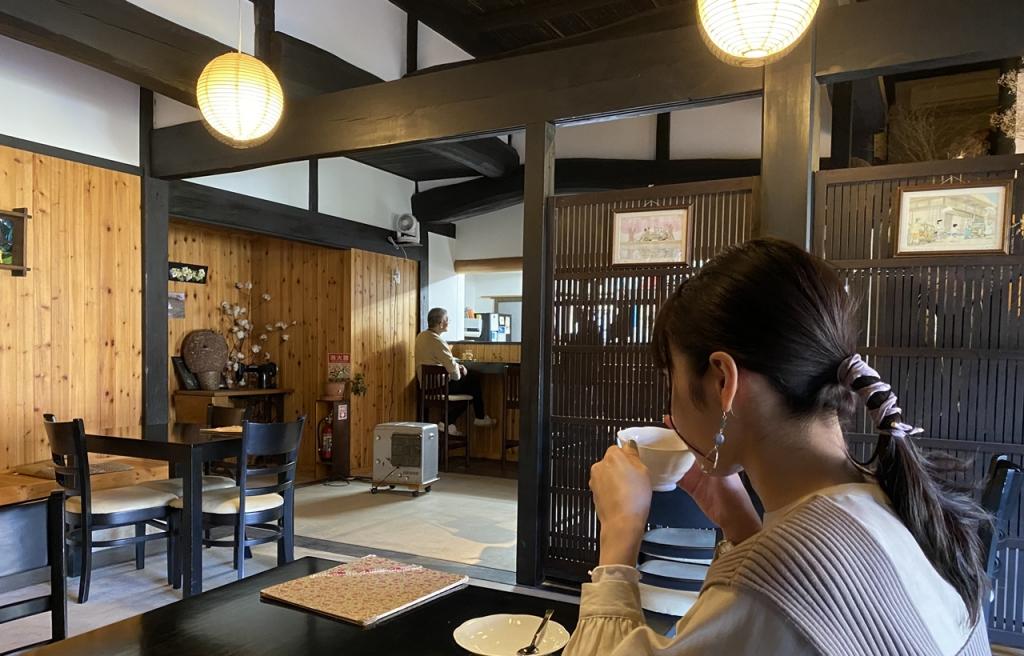母屋でも食事やコーヒーが楽しめるのですが、隣の蔵が元々からやっていた喫茶のメインの場所なんです。土蔵の中に入るとこれまた和風のお店になっていて、不思議と落ち着く空間になっています。ここはまさに「隠れ家」と言っても過言ではありません。