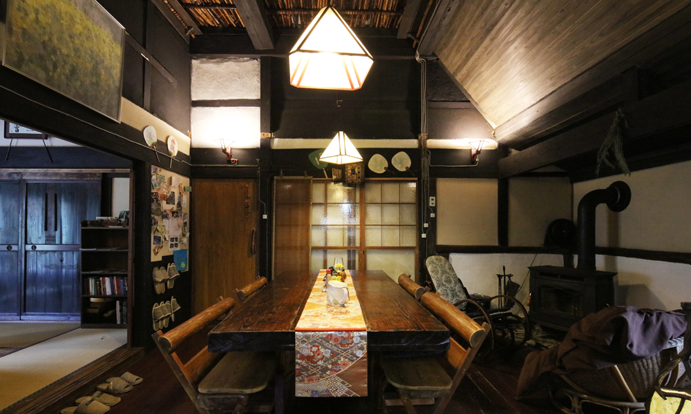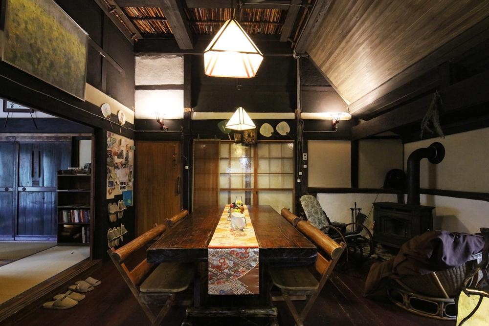 オーナーである石崎さんご一家は、アメリカや東京での生活を経て、ゆとりのある暮らしを求め、綾部の山里に残る集落「志賀郷」へ移住されました。築100年余の古民家を、建物が持つ雰囲気はそのままに、水回りなどを改修し、現代の人にも快適に過ごせる空間になっています。