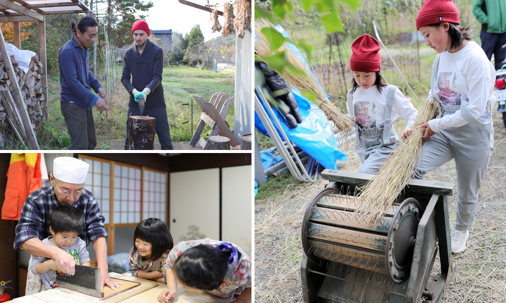 農家民宿施設ごとに体験できる内容は異なります。農業体験、そば打ち体験、餅つき体験、焚き木体験、星空鑑賞、山散策など種類は様々です。