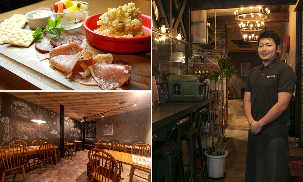 港町の舞鶴では珍しいアメリカンな雰囲気に惹かれて、がっつり食べたい男子やおしゃれ女子、バーで飲みたい大人までが通う『NICK BEER』。メインはその名通りの牛肉料理。脂身の少ないオージービーフを、リブロース、ヒレの部位量り売りやカットステーキ、ローストビーフなどで堪能できる。調理は遠赤外線効果で冷めても美味しく仕上がる、チャコール器具でじっくりと焼きあげる。肉は東舞鶴の老舗精肉店『いろは三条店』から仕入れ、品質も折り紙付きだ。