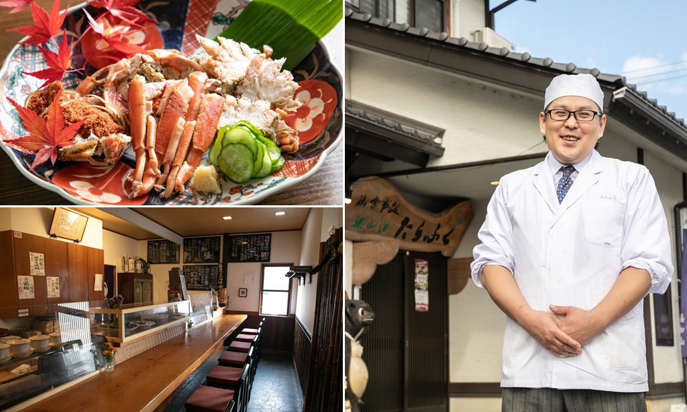 ランチタイムにはどの定食にも、日替わりで9種類のお惣菜が付くのも嬉しい。毎日替わる夜のメニューにはお惣菜の他に、造り盛り合わせ1,000円、京丹後の発酵食「へしこ」、冬期限定のカニやブリしゃぶなどもあり、北京都のグルメを堪能できる。