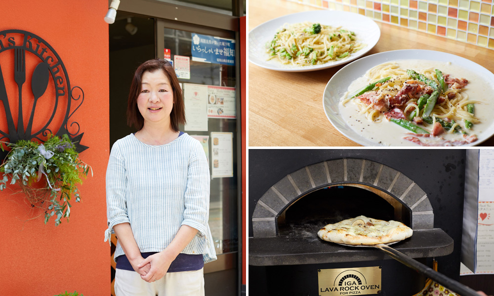 地元の人が、大切な人とハッピーなひと時を共有するために訪れるイタリアン。気軽な食事でも、誕生日や記念日などのお祝いでも会話が弾み、居心地がいいと人気を集めている。もちろんお目当ては、ナポリを中心にした、シェフ自慢の料理の数々。建物ができる前に搬入したという、ナポリ直送の薪窯で焼く本格ナポリピッツアは、シンプルなマルゲリータや丹後の魚介たっぷりマーレ ロッソ、トマトソースを使わない白いピッツアなど約20種がラインナップ。