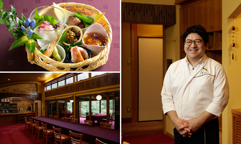腕を振るうのは、綾部のホテルで経験を積んだ通山直人シェフで、地元産の食材をふんだんに使った和食でもてなしてくれる。特別感のある料理や設えが地元の人にも好評で、誕生日や親戚の集まりなどに利用するリピーターが多い。