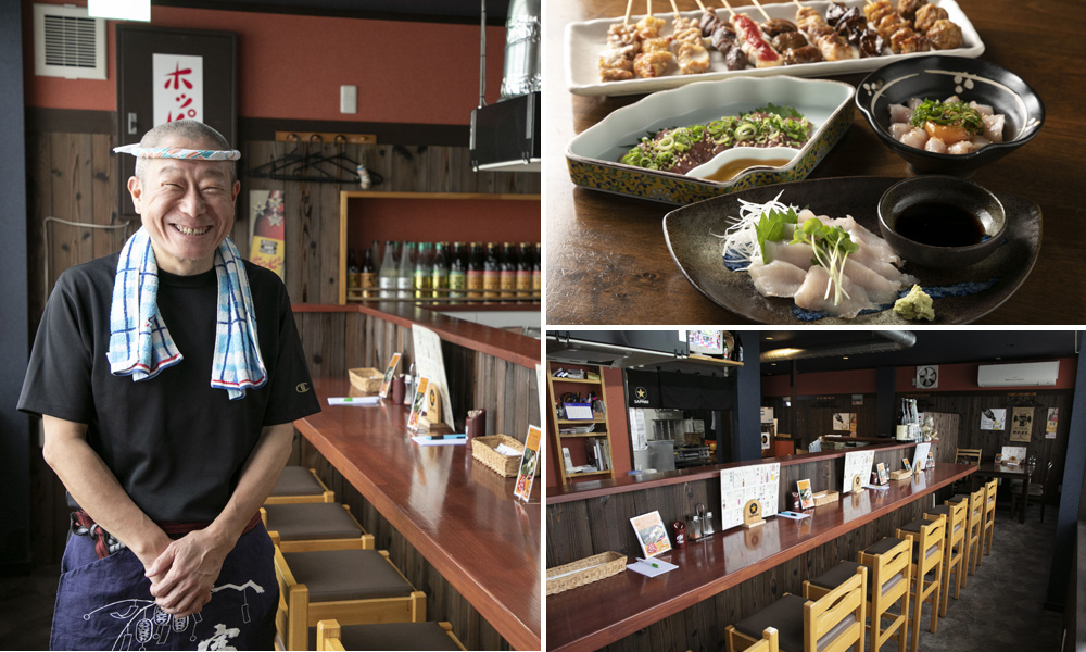 サラリーマンをしていた古和田英明さんが、2000年に酒好きが高じて居酒屋をスタート、2018年に現在の場所に移転した。綾部の自然豊かな上林地区の出身で、奥上林の「拍屋」の「上林鶏」を使ったメニューを看板にしている。