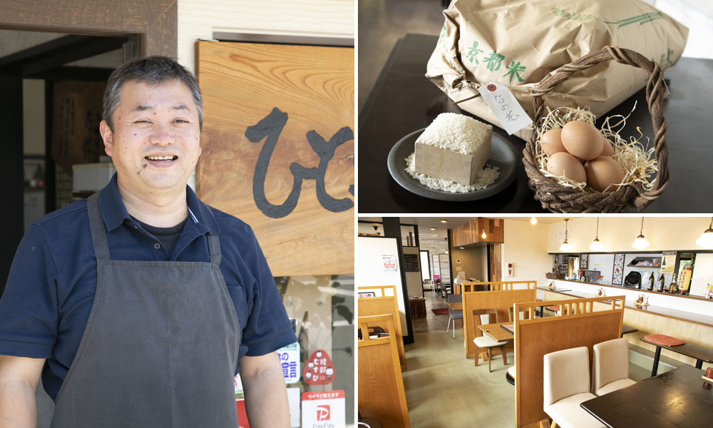 食材にこだわり、地元のファンから「ここで食べれば安心」と、太鼓判を押されている定食屋。店内に飾られた黒板には、産地だけでなく“どこの誰”が作った食材かを細かく紹介している。特に力を入れているのは、地元綾部の上林地区にある[蓮ヶ峯農場]の鶏肉。