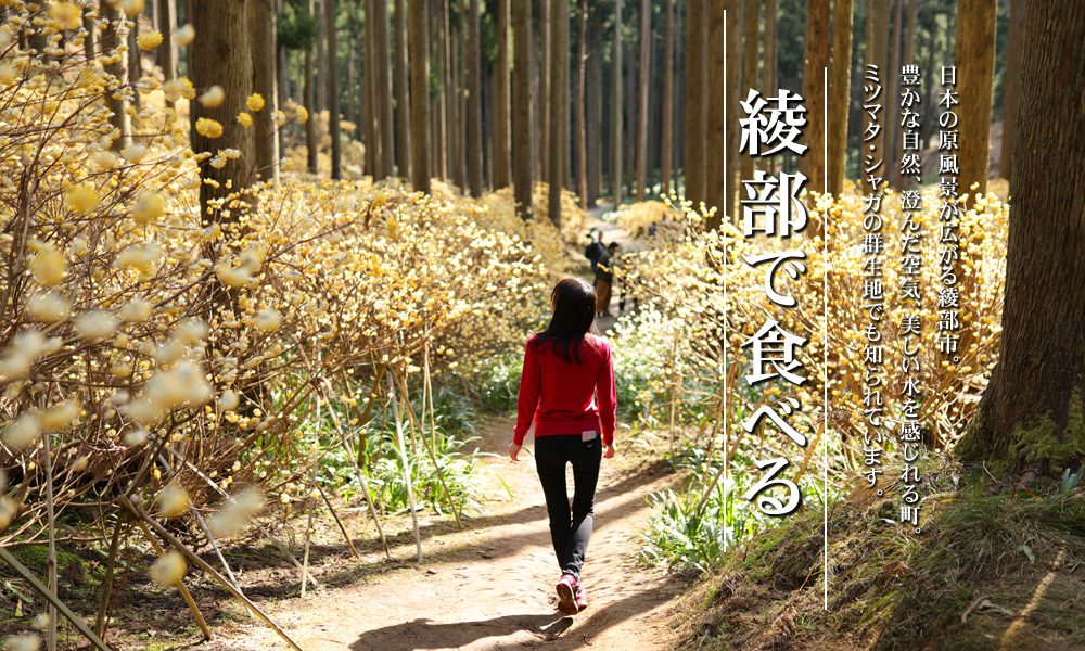 日本の原風景に出会える町「綾部市」。京都市内からも近く、豊かな森林、澄み切った空気、美しい水、秋の紅葉が魅力の場所。また綾部と言えば「神秘のミツマタ・シャガ群生地」としても知られるようになりました。