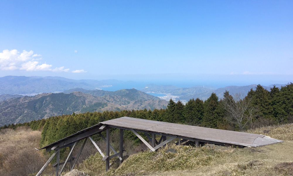 大江山のパノラマを体感したいけど運動が苦手な方に裏ワザ!航空管制塔:歩行約2分 ドライブコース山の頂上には、歩かなくとも、車で上ってたどり着けるドライブスポットもあります。大江山連峰にもそんな頂上が一つ。山の名前こそ付けられていませんが、大江山の航空管制塔は立派な山の頂上です。航空管制等に車を停め、宇宙ステーションのような航空管制塔を左に見ながら鬼の岩屋方面へ歩くこと約2分、加悦谷平野と宮津湾を望む清々しいパノラマが広がる眺めの良い原っぱが。木製のベンチも設置してあります。パラグライダーの発射台が写真映えポイントでポーズがやたら決まります。有酸素運動が苦手な方も、安心して山の頂上を楽しめます。お弁当を持ってきてのピクニックも良いですね。たのしい大江山での思い出以外は全てお持ち帰り下さい。ゴミはすべてもちかえりましょう。