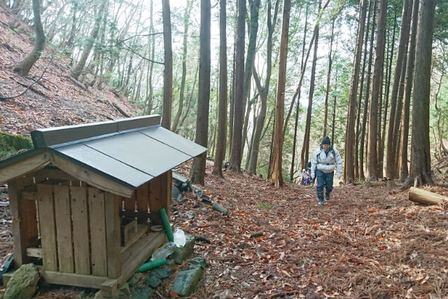 途中の小字寺屋敷には、「普甲寺」という寺があったとされています。「普甲寺」は、平安時代には存在していたことが確実な山岳寺院で、「大寺」であったとされていますが、成立年代や経緯、開山等はいずれも不詳です。『伊呂波字類抄』では、延喜年間の創始とし、『塵芥抄』では美世上人が開山しました。ただし、この美世上人については、他書に記載が確認できず、事跡等は不明です。『沙石集』『今昔物語集』などに、関連の説話が載っています。この説話である「始丹後国迎講聖人往生「普甲寺」の歴史的な経過は資料が少なく、不明な点が多いのですが、現在も普甲寺跡には普賢堂が残っているほか、礎石や垣、小祠などが一部残っています。ただし、建物等は当時のものではなく、後世に整備されたものと考えられています。普甲寺は、中世まで続き、一説には、安土桃山時代に焼失したともされていますが、詳細は不明です。