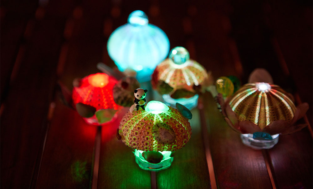 日本三景天橋立で拾った貝殻やシーグラスを使ってウニランプ作り。