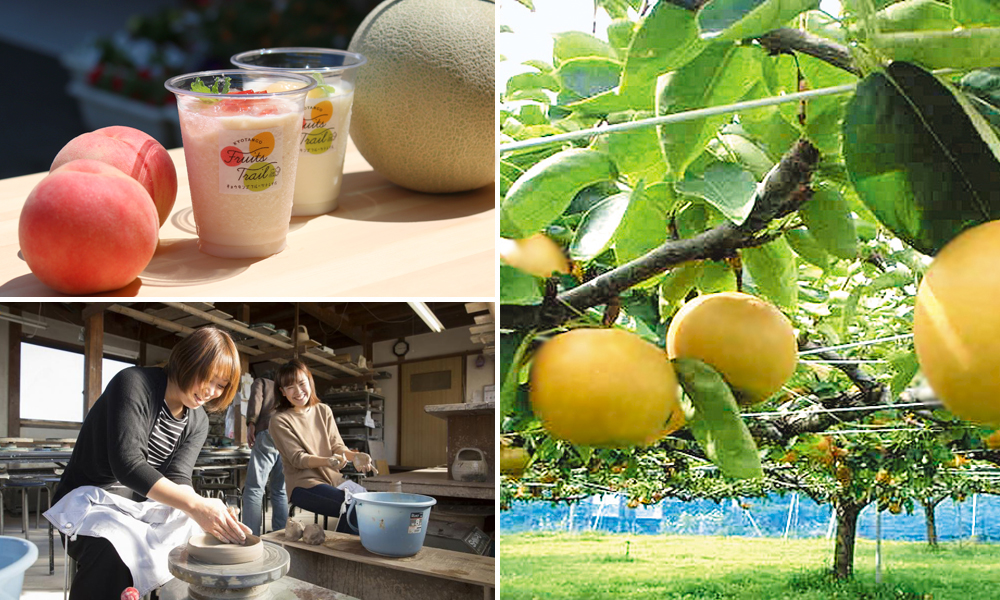 たくさんの果樹園が集まる久美浜町。お土産にも大好評です。 とれたて新鮮な果物を贅沢に使ったフレッシュジュースやフローズンスムージーが味わえる「キョウタンゴフルーツトレイル」が人気!