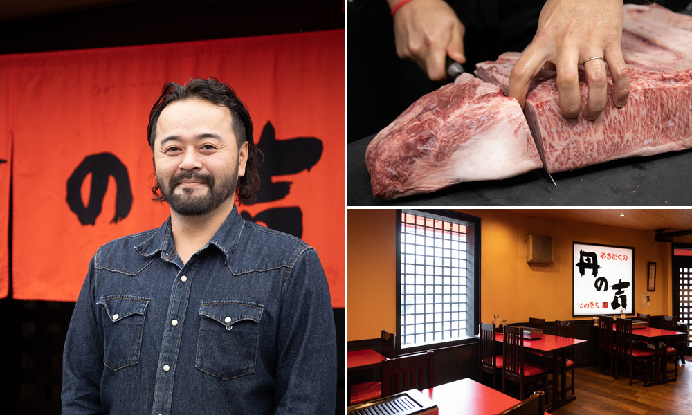 牛肉を食べる文化が根付く福知山のまちで、昭和56年に創業。現在は2代目の大槻真也さんに引き継ぎ、質にこだわり抜いた肉とフレンチがベースの創作料理が味わえる店として注目が集まっている。