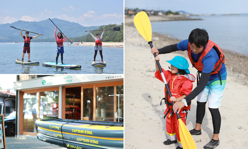阿蘇海と宮津湾に囲まれている自然いっぱいの天橋立で魚釣りやシーカヤック、SUPなどのアウトドア体験が出来る施設です。インストラクターが常駐しているので空きがあれば当日予約もOK!初めての方でも安心して体験することが出来ます。