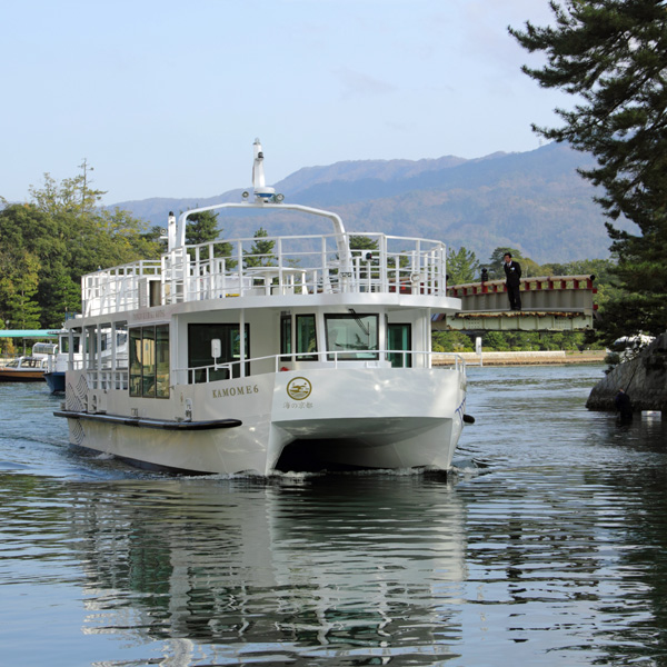天橋立駅から徒歩約4分(約300m)に「天橋立観光船のりば」があります。天橋立駅側から対岸の府中(ふちゅう)へ船で行くことができます。府中には股のぞき発祥地の傘松公園や元伊勢籠神社、成相寺などがあります。観光船の詳細はこちら